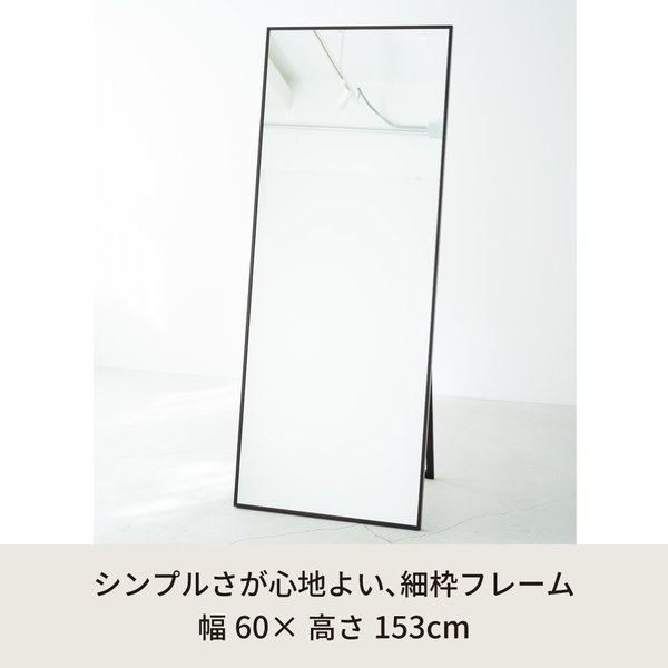細枠スタンドミラー (/白) 天然木/姿見鏡/スリム/高級感/木製/飛散防止加工/折りたたみ/北欧風/日本製/完成品/NK-1