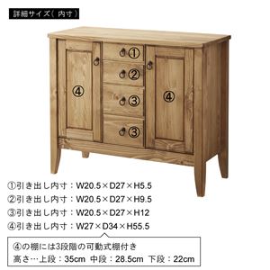 サイドボード リビングボード 木製 引き出しストッパー 可動棚 脚付き オイル仕上げ リビング ダイニング インテリア家具 代引不可