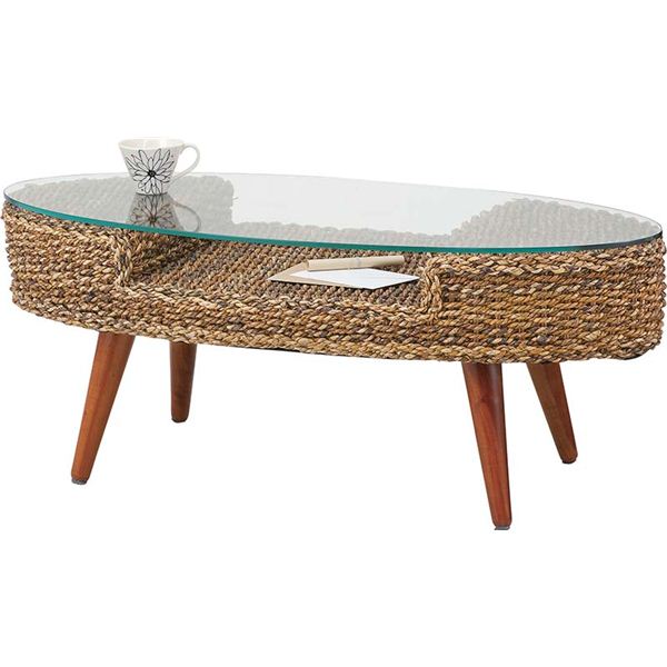 ローテーブル センターテーブル 楕円形 オーバル型 木製 棚付き 強化ガラステーブル アジアン家具 クラール リビング