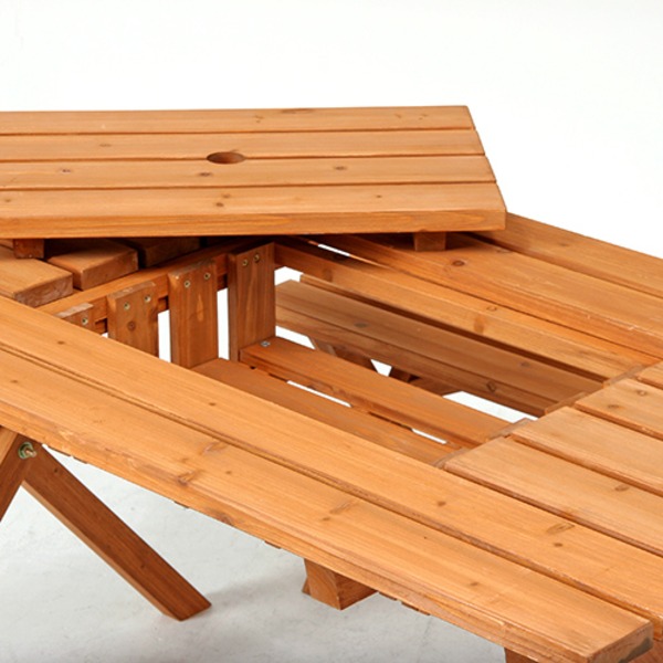 テーブル中央にはパラソルホールがあり、パラソルと合わせて使用することができます。