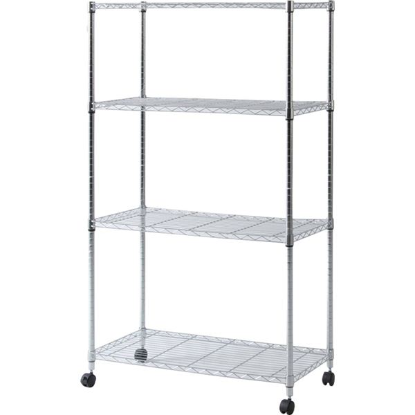 スチールラック 収納棚 4段 クロム キャスター付き メタルマルチシェルフ 組立品 リビング ダイニング インテリア家具 代引不可