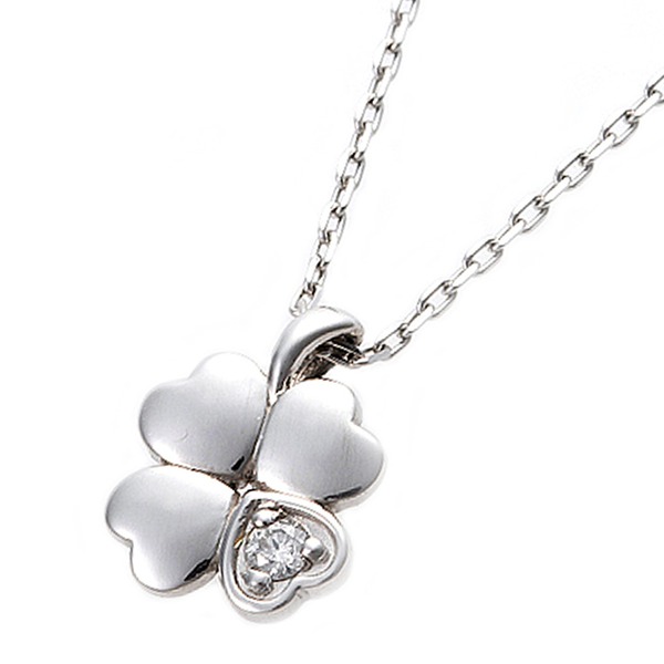 ダイヤモンド ネックレス 一粒 0.014ct プラチナ Pt900 四葉 クローバーモチーフ ペンダント 鑑別カード付き