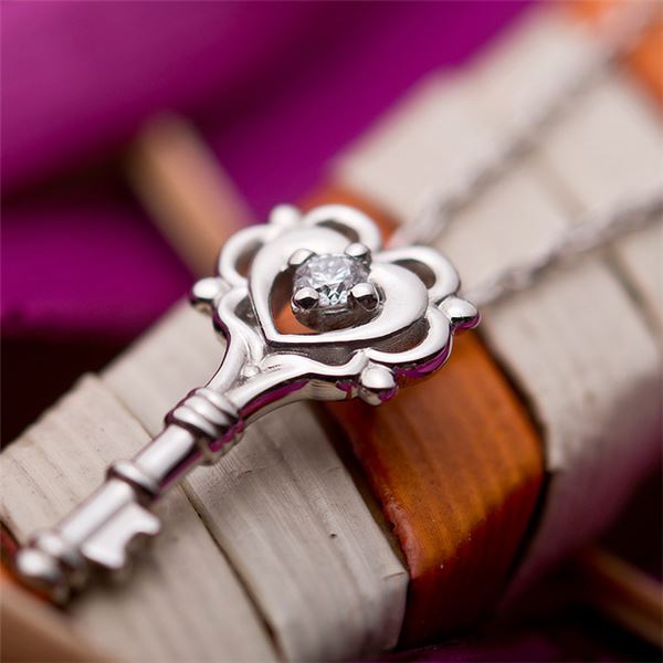ダイヤモンド ネックレス 一粒 0.014ct プラチナ Pt900 鍵 キーモチーフ ペンダント 鑑別カード付き