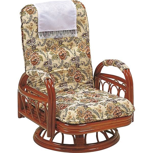 座椅子 奥行65~88 高さ62~75 座面高26cm リクライニング式 360度 回転 木製 籐 サイドポケット 肘付き リビング 代引不可