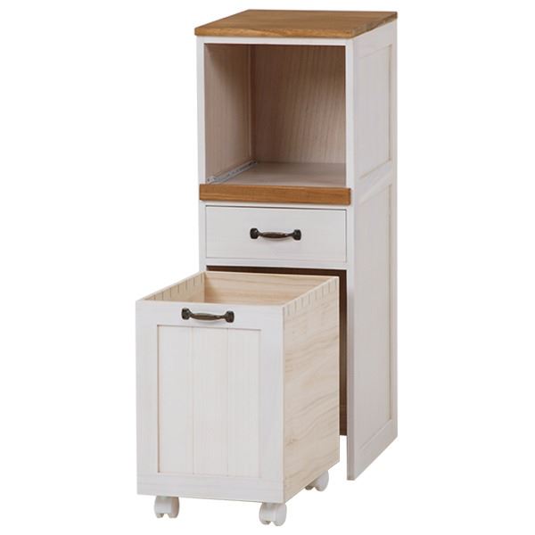 キャスター付きで移動がラクラク!炊飯器&1.5リットルペットボトルも収納できるカントリー調ミニキッチンワゴン!