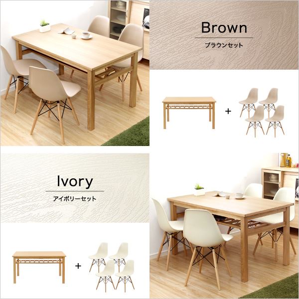 ナチュラルなテーブルと時代を超えて支持されるイームズ風チェアのダイニング5点セット!