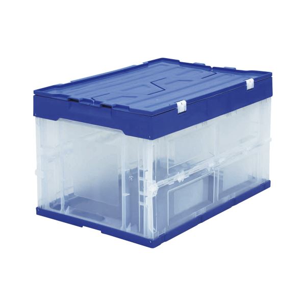 (まとめ) アイリスオーヤマ ハード折りたたみコンテナフタ一体型 /クリア HDOH-50 ブルー/クリア 1個入 2セット