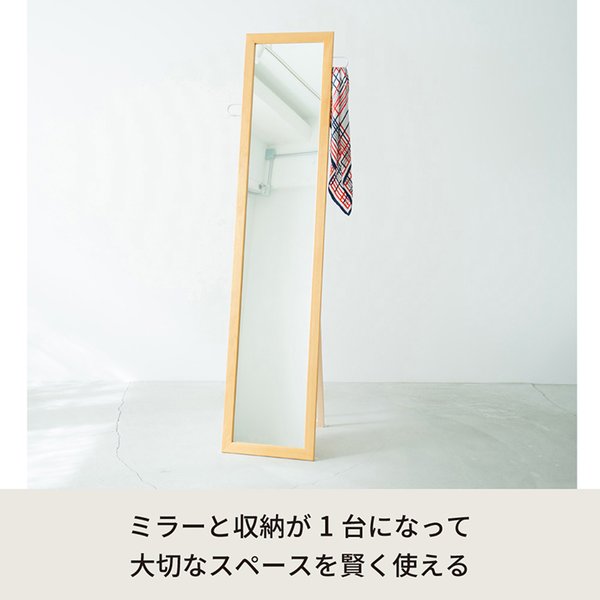 フック付きスタンドミラー() 幅35cm 鏡/カガミ/姿見/全身鏡/木製/飛散防止加工/日本製/収納/ラック/ハンガー/北欧風/折りたたみ/EN-021