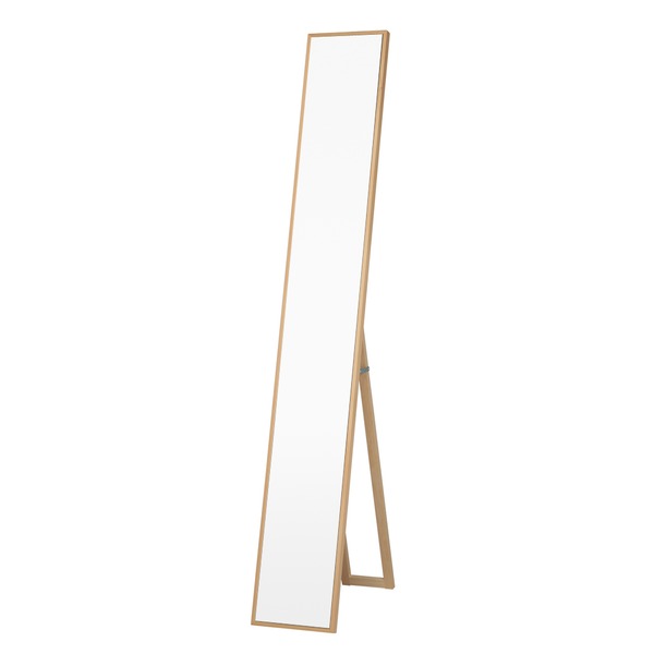 細枠スタンドミラー () 天然木/姿見鏡/スリム/高級感/木製/飛散防止加工/折りたたみ/北欧風/日本製/完成品/NK-1