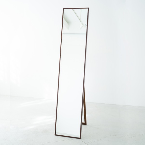 細枠スタンドミラー (/茶) 天然木/姿見鏡/スリム/高級感/木製/飛散防止加工/折りたたみ/北欧風/日本製/完成品/NK-2