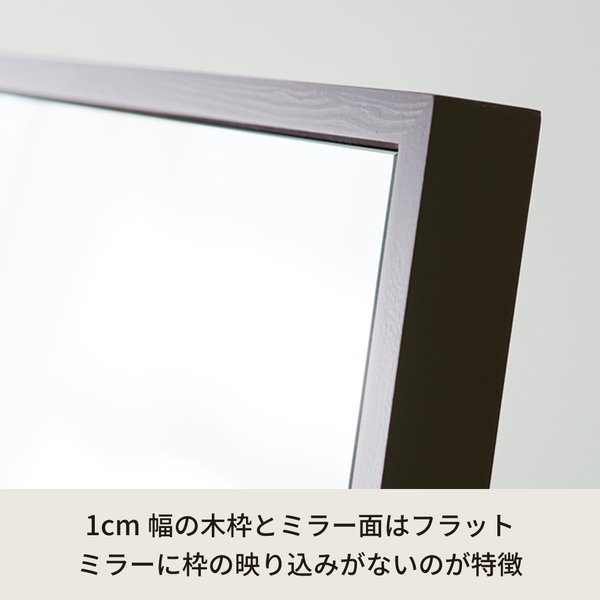1cm幅の木枠とミラー面は、ほぼフラットで見た目に美しく、