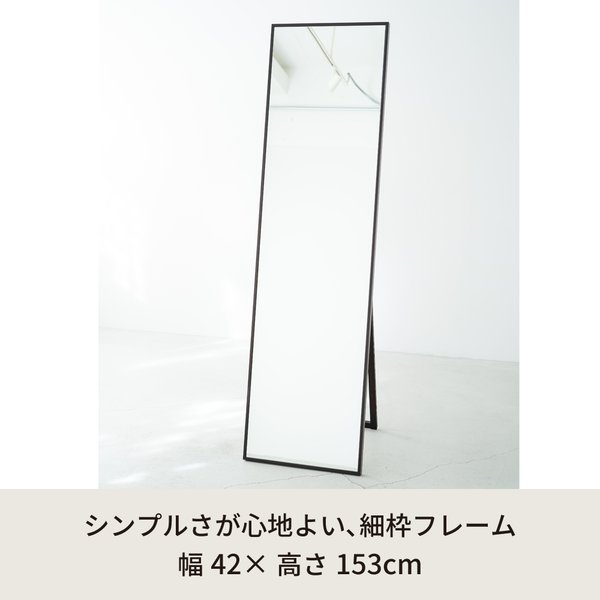 ◇◆木目が美しい天然のツガ材を使用した細枠フレームのスタンドミラー◆◇
