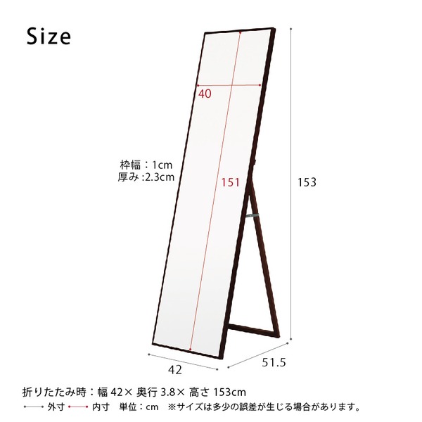 細枠スタンドミラー () 天然木/姿見鏡/ワイド/高級感/木製/飛散防止加工/折りたたみ/北欧風/日本製/完成品/NK-3