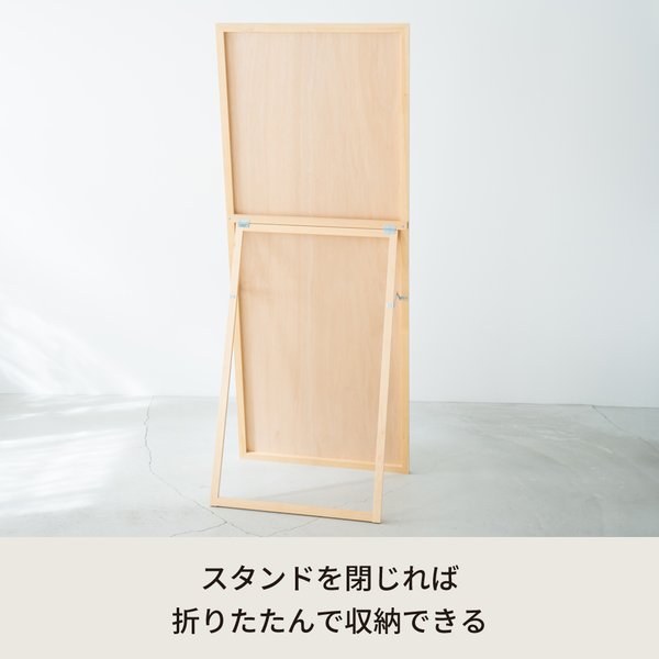 細枠スタンドミラー () 天然木/姿見鏡/ワイド/高級感/木製/飛散防止加工/折りたたみ/北欧風/日本製/完成品/NK-4