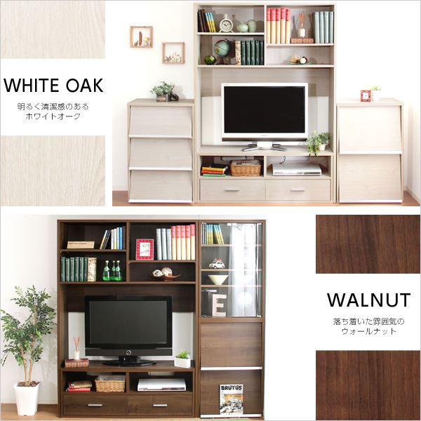 壁面収納 テレビ台用ハイラック オーク 引き出し2杯付き 可動式棚板付き 抗菌 防臭 代引不可
