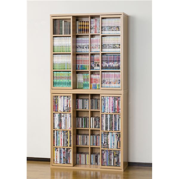 スライドシェルフ(CDラック/本棚) 約幅90cm 前面スライド式 連結金具付き 組立
