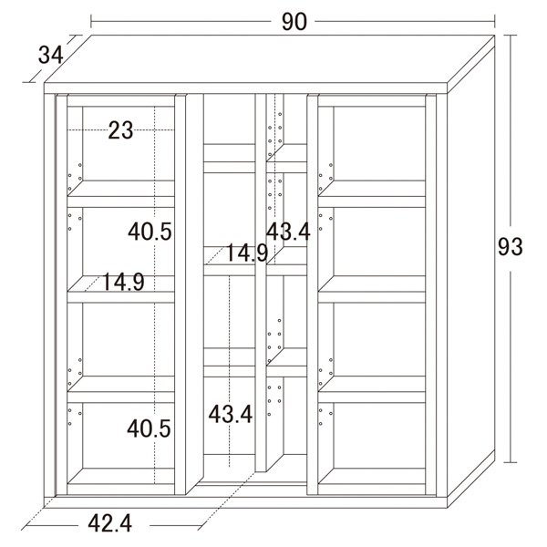 ●本体(空間内寸4ヶ所)約幅42.4×奥行14.9×高さ43.4cm(3.2cmピッチ7ヶ所移動)