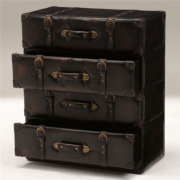 チェスト タンス 4段 合皮 合成皮革 トランク型チェスト リビングチェスト リビング収納 インテリア家具 代引不可