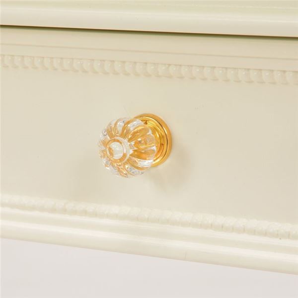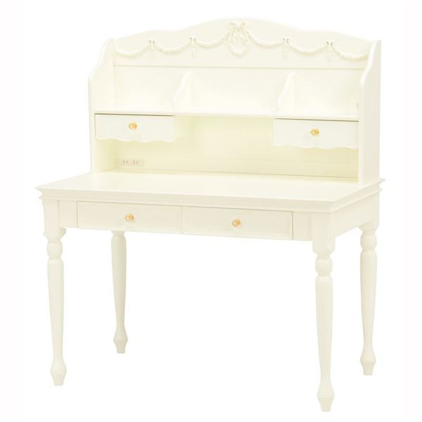 二口コンセントやA4対応の引出し、キュートなリボンレリーフとクリスタルの取っ手が可愛い学習机。