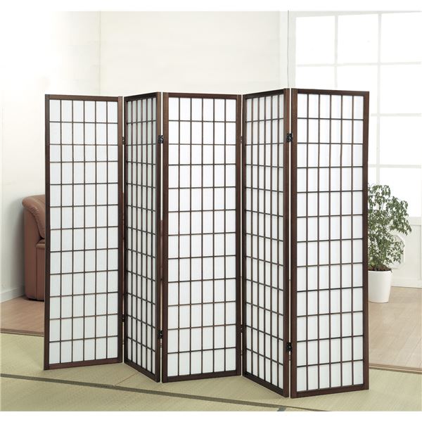 パーテーション/衝立/障子スクリーン5連 木製フレーム 代引不可
