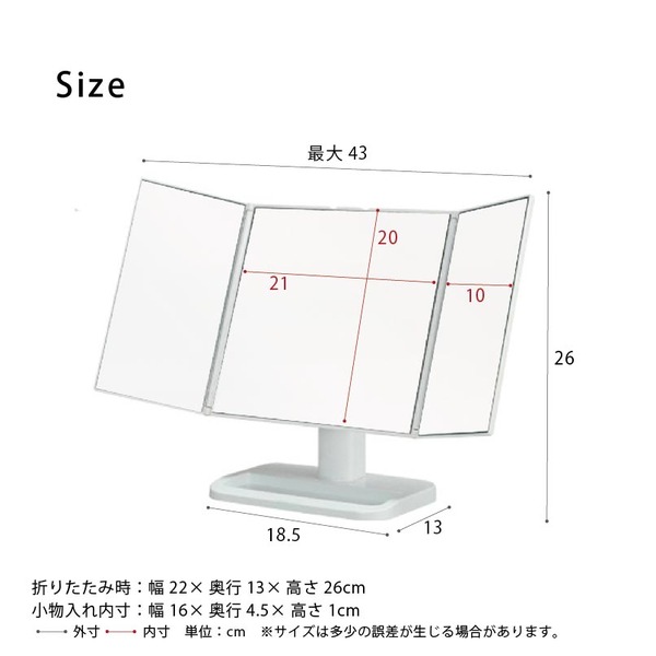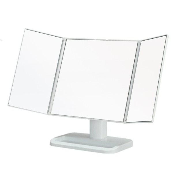 12個セット メイクアップミラー(/白) 折りたたみ三面鏡/卓上ミラー/飛散防止加工/角度調整可/ワイド/メイク/収納トレイ付き/業務用/完成品/NK-242