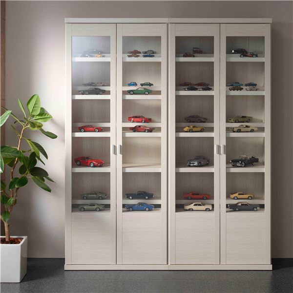 棚板を段違いにすることで小物・フィギュア・雑貨などのディスプレーに最適。