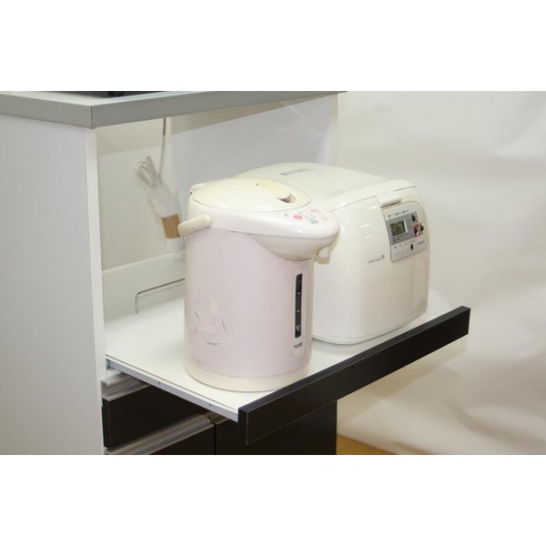 12kg入り米びつ・コンセント・スライドレールも付いた、便利なレンジ台。