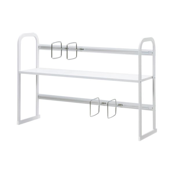 机上でも机下でも使えるシンプルな卓上ブックスタンド、W800mmタイプ。便利な移動式ファイルサポートが4本付いています。棚板は固定式です。