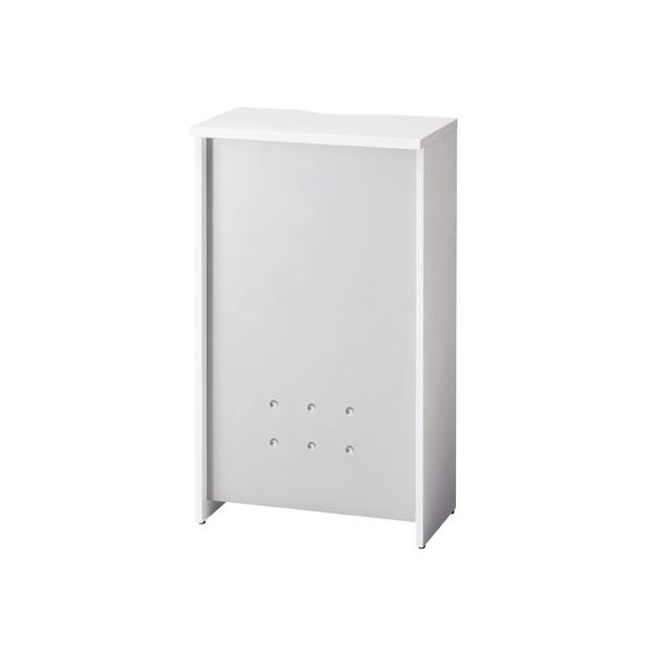 ホワイトカラーをベースとした清潔感ある「b‐Foret(ビーフォレット)」無人受付カウンターH1050/W600mm。幕板カラー/シルバー。天板・側板は低圧メラミン化粧板、幕板はスチール製の木・金属を組み合わせたタイプのカウンターです。収納に便利な中棚付き(固定式)。幕板にはさりげないデザインを施してあります。