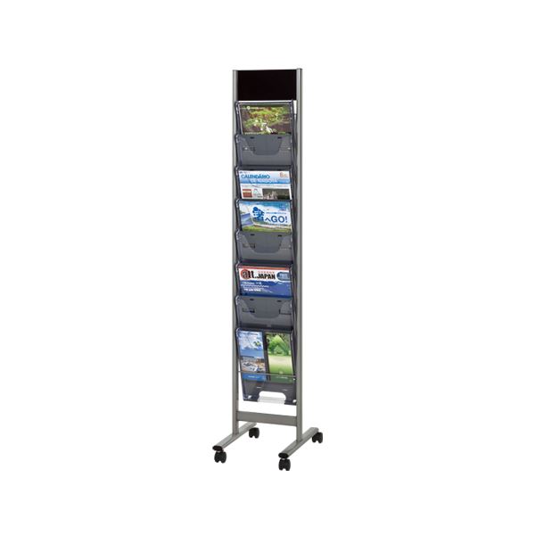 ケース内のサイズをA4以下に変えられるパンフレットケースシリーズのパンフレットスタンド、DP‐C/1列8段タイプ。設置するスペースによって列数を選べる垂直タイプ。目線を遮らない高さのロータイプもあります。ケースは簡単に取り外せて1ケースずつ持ち運びが可能。サイズチェンジパーツを使用すれば、A4以下(A4三つ折・B5・B6・A6・ハガキ)のパンフレットも上辺を揃えてきれいに収納することができます。ケースの表側はパンフレットの表紙がよく見えるクリアタイプ。