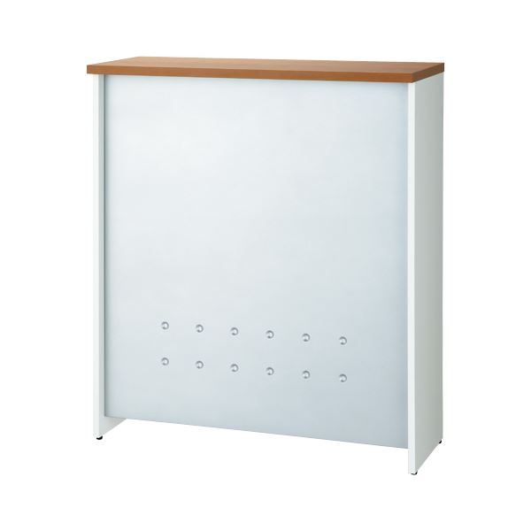 デスクシリーズ「b‐Foret(ビーフォレット)」ハイカウンターH1050/W900mmタイプ。天板ミディアムウッド×幕板シルバー。天板・側板は低圧メラミン化粧板、幕板はスチール製で木と金属を組み合わせたタイプのカウンターです。便利な中棚付き(固定式)。A4サイズの縦型書類・ファイルが、立てても収納できます。中棚の中心位置には縦間仕切があるので整理整頓に便利です。同シリーズのローカウンター、ハイコーナーカウンターと連結して、幅広くレイアウトができます。