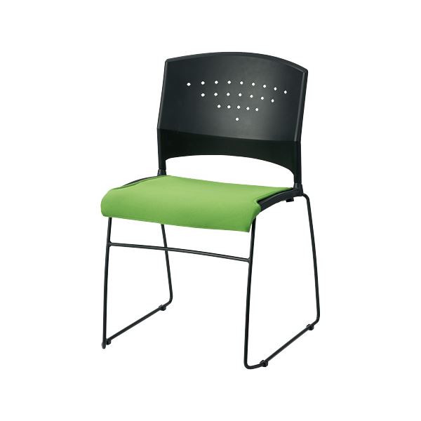 使うシーンに応じてメモ台付きやアミ棚付きが選べる、座クッション付きのミーティングチェア「GK‐C10R」メモ台なし/グリーン。座クッションは明るいグリーン、背はヌードタイプ。シックな黒仕様で落ち着いた雰囲気です。4脚までスタッキング可能なのでコンパクトに収納できます。オプションでアミ棚(347‐463)の取り付けが可能。狭いセミナー会場などでも座面下に収納スペースができるので荷物の置き場に困りません。