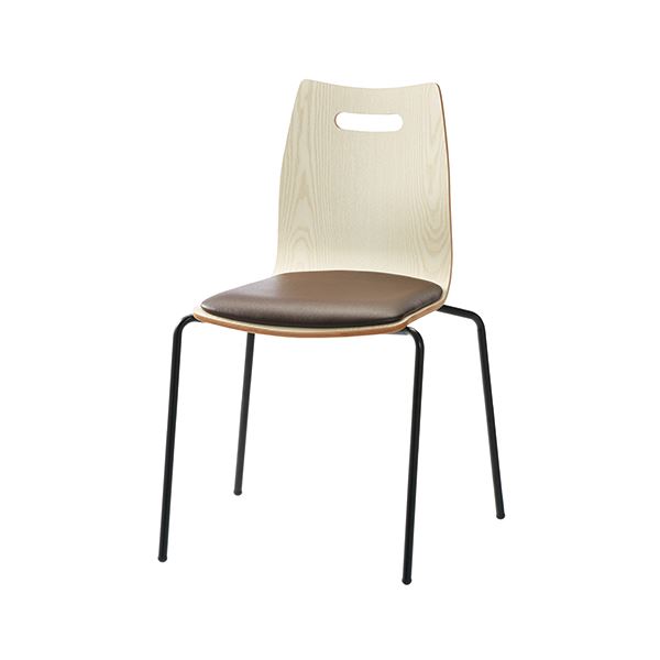 ●材質:背・座(表面/芯材)=メラミン化粧板/成型合板、座パッド(張地/芯材)=PVCレザー張/成型合板、クッション=ウレタンフォーム、脚=φ15.9mmスチールパイプ(粉体塗装・ブラック)、脚端=ナイロン