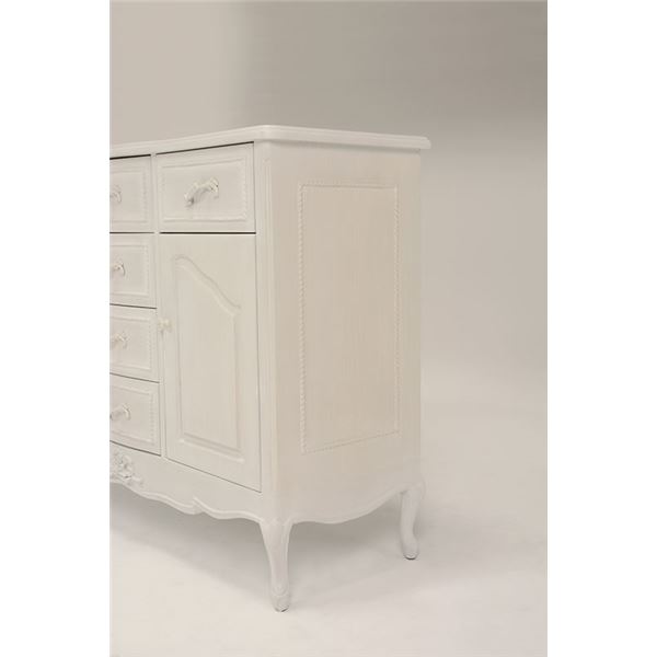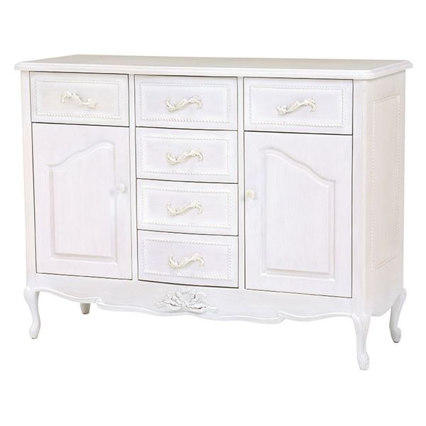 開梱設置サービス付 ワイドキャビネット リビング収納 木製 引き出し 扉 脚付き 姫系 アンティーク風 ハンプトンシリーズ リビング 代引不可