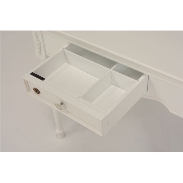 エレガントな彫刻が施された引出しつきアンティーク風テーブル。引き出しは鍵付き。