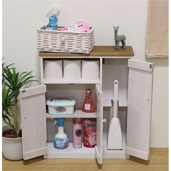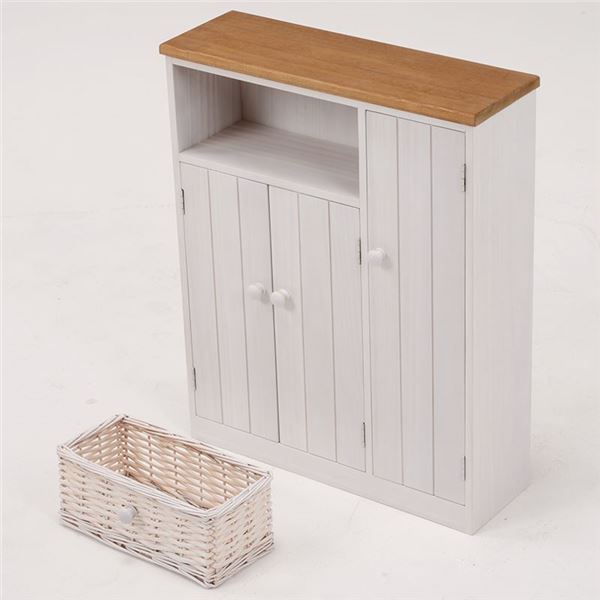 トイレラック トイレ収納 スリム 扉 バスケット収納付き 木製 お手洗い 御手洗 収納家具 収納用品 代引不可