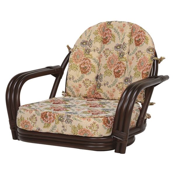 座椅子 約 座面高16cm 花柄 回転式 肘付き 籐椅子 ラタンチェア リビング 代引不可