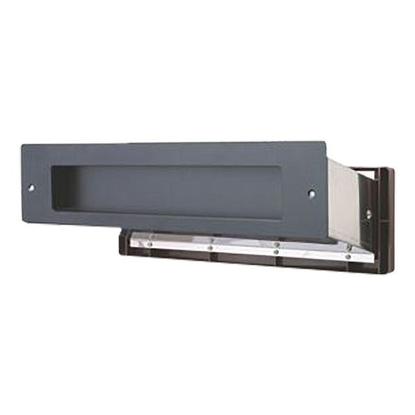 口金付きの埋込専用ポストになります。シュートの内側にフタがあるので気密性を保持し、パッキンでフタの開閉時の音や吹き込みを防ぎます