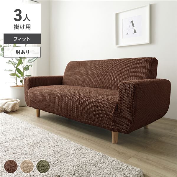 ※このページは「肘あり/3人掛け用」のフィット生地ソファカバーの販売ページになります。