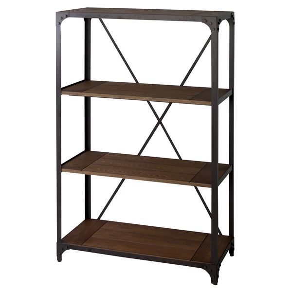 オープンラック 収納棚 3段 スチールフレーム アジャスター付き 木製 天然木 リビング ダイニング
