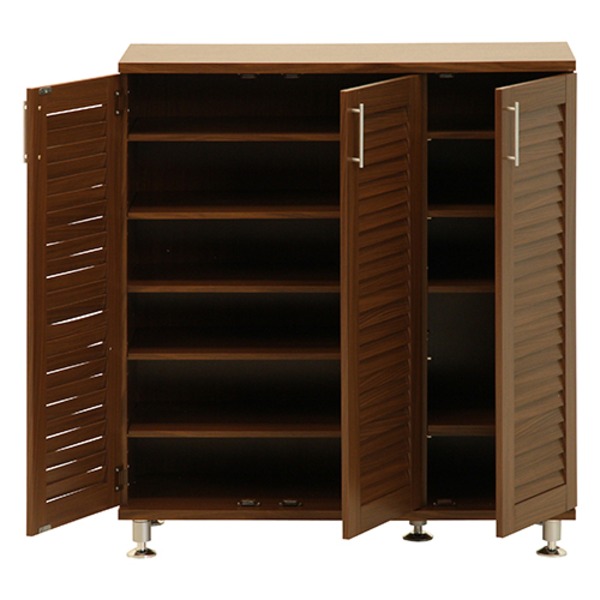 ルーバー シューズラック 下駄箱 約幅90.5cm 取っ手付き扉3枚 棚板5枚 脚付き 玄関 エントランス 入口 代引不可