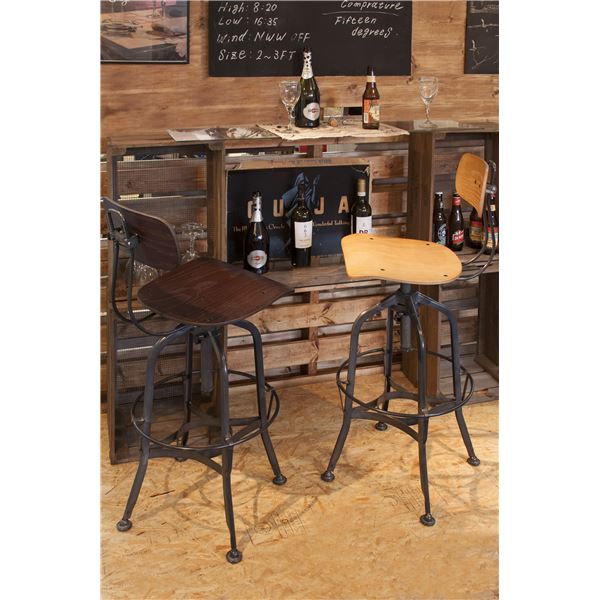 カウンターチェア 背もたれ付き 座面昇降式 木製 スチール バーチェア インダストリアルシリーズ リビング ダイニング 代引不可