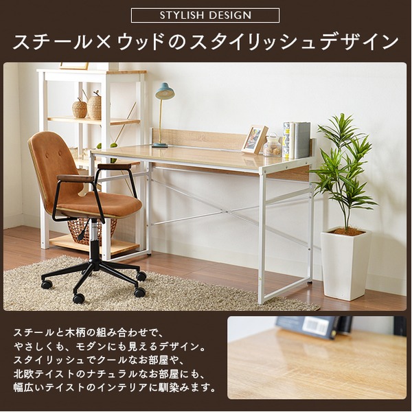 スチールと木柄の組み合わせのシンプルでスタイリッシュなデザインのデスク。