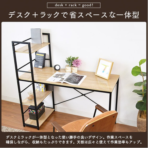 デスクとラックが一体型となった使い勝手の良いデザイン。