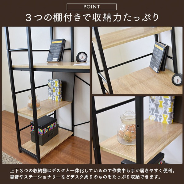 デスク 机 パソコンデスク 学習机 木製 収納ラック 棚付き スチールフレーム /ナチュラル WH/NA 組立品 代引不可