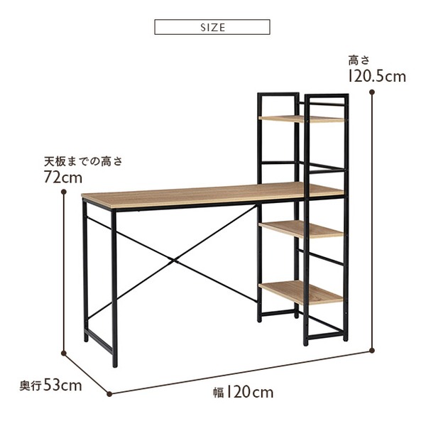 【サイズ】全体幅120x奥行53x高さ120.5cm(天板高72cm)