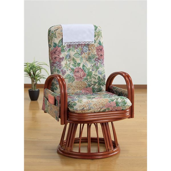 天然籐リクライニング回転座椅子ハイタイプ (サイドポケット付き) 代引不可