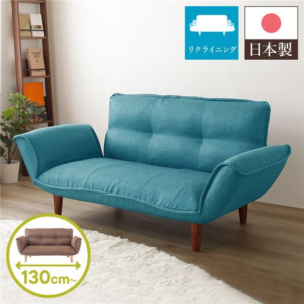 日本製 リクライニングソファー/ローソファー タスク生地 ブルー 脚部: 幅130cm 肘付き 脚付き 代引不可