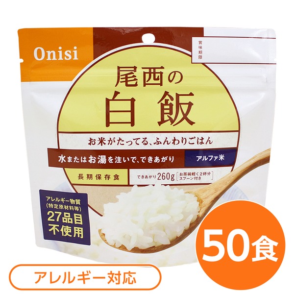 尾西食品 アルファ米/保存食 白飯 100g 50個セット 日本災害食認証 日本製 非常食 アウトドア 備蓄食材 代引不可