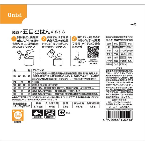 尾西食品 アルファ米/保存食 五目ごはん 100g 300個セット 日本災害食認証 日本製 非常食 企業備蓄 防災用品 代引不可